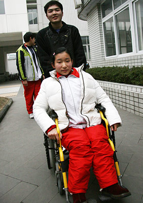 每当清晨,树德中学校园里都会出现这样一幅画面,一名少女从母亲的电动车上下来,在几个同学的搀扶下坐上轮椅,跨上几级台阶来到一楼的高三教室,她在课桌前笑着向同学们道谢,然后拿出书本,开始新一天的学习。