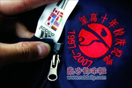 对于生产厂家是招标来的这一说法,工会张主席说,起初是有不少企业竞标,但是最后都退出了,只剩下深圳市锁福服饰有限公司一家,他们就和该公司签了合同,但当时并不知道是否该公司有生产“阿迪达斯”运动装的资质。而对于二人找中间人采购一事,校方表示此前不知情。