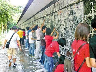 “净化校园,对校外日租房说不!”20日,重庆工商大学学生发起签名抵制日租房活动,并动手清除飞进校内的日租房“牛皮癣”广告。但记者昨天调查发现,仍有校外日租房生意很好,向房东询问求租的电话不断。