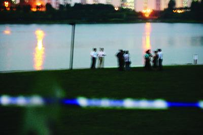 大学城中心湖坐落在体育中心南面不远的景区里。警方围绕湖岸拉了数百米的警戒线,紧挨着警戒线的岸边草坪上,还聚集着三三两两的人。借着星光和灯光,可以望见湖的东南岸边躺着死者的尸体,法医正在紧张勘查,周围还站着死者的部分同学。两辆警车和一辆救护车停在岸边的水泥地上。