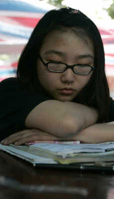 地震之前,学校的老师们安排了复习的方向、制定了进度,高三同学刚进行完第三次仿真模拟考试。“不知道考得怎么样,还没拿到分数就地震了。”张亚秋告诉早报记者,几天前绵竹中学曾召集高三学生复课,在帐篷下由老师带着复习,但三天前发生了一次较强余震,学校又停了课。张亚秋最大心愿就是能有老师带领着复习,她说这样复习的效率会更高一些。她也希望高考能推迟,“毕竟中间受了这么大波折”。(记者 龙毅 李萌)