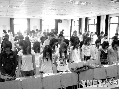 北京高校哀悼四川灾区遇难者 学子课堂肃立(图)