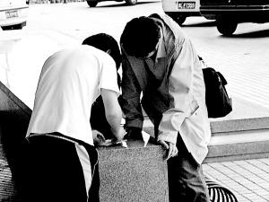 记者以买证为由,与卖证者小刘见了面。小刘一身学生打扮,看上去有20岁左右。他出示的本人学生证上姓名是“刘政”,学校为首都经济贸易大学,系别为“工商管理”。他“指导”记者在一本空白的学生证上填写资料,“除了姓名和身份证号,学号、系别等都按照要求填写,或按照我的证写。”待记者填写完毕,他拿出“学校”的钢印机,在记者贴好的照片上压盖(见图)。至此,一张“首经贸学生证”新鲜出炉——整个过程不到10分钟。