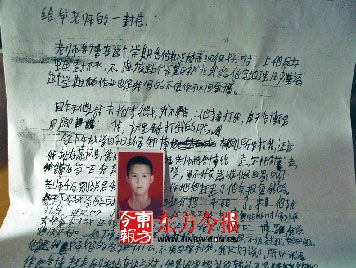 崔鑫给班主任的信 资料图片