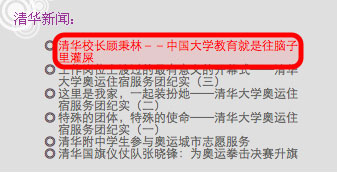 一条清华新闻网被黑的消息在各大网站流传。一名黑客捏造了一篇清华大学校长顾秉林接受采访的新闻报道,批评现行教育制度。前天,清华大学新闻中心为此特别在网上发表声明,称对此黑客行为表示“强烈愤慨和谴责”。
