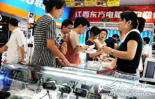 电脑、手机、MP3已经成为目前一些家庭经济条件较好的大学生的“新三样”,成为学生新学期的新装备。某商场的一名导购员告诉记者,开学前的这段时间是数码产品的销售旺季,各商家均纷纷采取各种促销手段来吸引学生群体。正在南昌市一电子数码城购买MP3的大一学生小王告诉记者,考上大学时父母就答应给她买手机和MP3,今天和妈妈一起出来挑选。