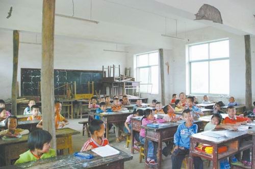 近日部分学生反映,今秋开学后西安市蓝田县汤峪镇张坡村小学学生仍在地震损坏布满支撑立柱的教室中上课,9月2日记者在蓝田县教育局了解情况时,该局计财科负责人樊继刚老师对记者说:“蓝田县地震损坏校舍修复问题有望9月底前得到解决,希望家长理解。”
