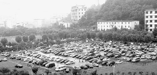 家长开车送孩子报到 操场停满轿车如同车展(图)