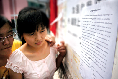 同学们正浏览布告栏上的英文寻人启事 记者 吴珊