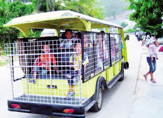 幼儿园将电瓶车改装成"校车" 如同"鸡笼"(图)