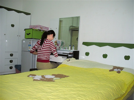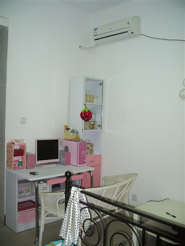 10平方米的屋子摆放着一张雕花大床、全套粉红色电脑桌、梳妆台和衣柜,空调、冰箱和电饭煲等生活家电齐备,墙壁上花状壁灯和各式各样装饰品仿佛透露了这间房的“主人家”是个年龄不大的姑娘……如果不是从四川某高校女生宿舍楼大门进来,记者都不敢确定应该用“学生宿舍”还是“宾馆套房”为这间屋子定名。