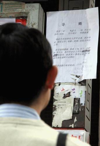 这张“寻婿”启事是打印出来的,上面介绍,女儿是成都人,1982年出生,受过高等教育,喜好文学和书画,现在成都一机关单位工作,要求对方1.7米以上,30岁,本科毕业。“两天前,这则启事就贴出来了,大家都没有在意。”从图书馆经过的一名男同学说。记者拨通了启事上留下的电话,接电话的男子说,是他请人把启事贴到校园的,想为女儿找个好的男朋友,“女儿26岁,不小了。”把启事贴到校园是因为家离大学很近。记者提出与这位父亲见个面,他刚开始还是比较谨慎,聊了10多分钟后,他终于同意在牛市口附近见面。