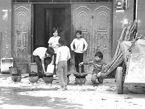 她们每天早上七八点吃一顿饭,然后去上课,下午4点放学后,再做一顿,中午不吃饭。