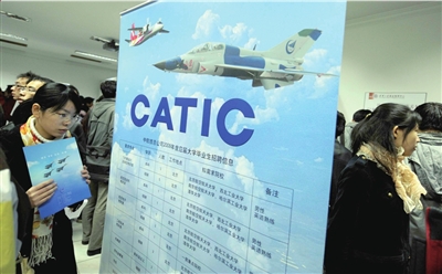 昨天中国航空工业集团共有50多家下属单位来清华招聘。本报记者范继文摄