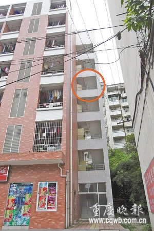 易某从五楼消防通道的窗口跳下身亡 记者 冉文 摄