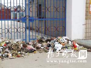 面对眼前一大堆不堪入目的垃圾,盐东镇中心幼儿园园长陈女士气愤地告诉记者:“城管大队那个姓孙的队长在昨天说了,再不交环卫费,就用垃圾封我们的门,所以这垃圾毫无疑问是他们搞的,他们夜里干的,我们一大早才发现。”
