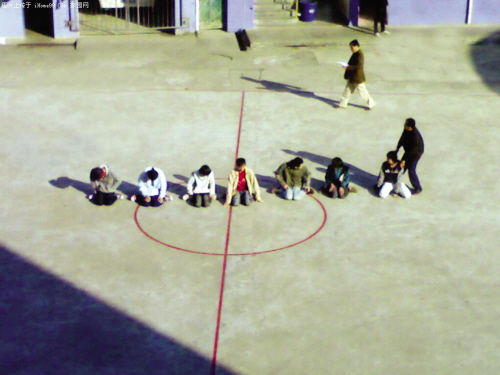 10日,一网友在福州某网上论坛发了一个“气愤!学校如此体罚学生”的帖子,大意是:9日上午,福州市某技工学校的7名学生,在该校操场上被老师罚“跪”。该帖还配发了两张照片,7名学生模样的人低头跪坐在操场上。