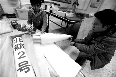此前,北航学生自己设计制作的第一枚火箭“北航一号”刚刚发射成功。