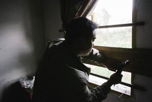小坤的二伯将窗户钉上 记者 陈艺丰 摄