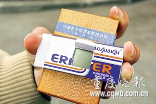 小小橡皮不仅可以读懂英语题目,还可通过骨头传感将答案输送到大脑,你信不信?骗子抓住大学生急于过四级的心理,骗了南岸某大学60多名学生。昨日(12月23日),受骗学生赵刚(化名)向记者展示了这种“高科技骨导传音接收作弊器”,其实就是一块只值两元钱的普通橡皮。