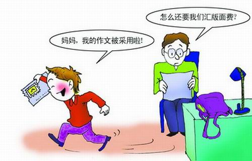 昨日(12月30日),住在禾祥西路的林先生向本报反映,他的儿子涵涵(化名)在思明区一所小学上五年级。今年11月中旬,林先生家里的信箱收到一封信,内容写在一张印有“小学生学习报”标志的信纸上。“上面说我儿子一篇题为《可爱的小狗》的作文被《小学生学习报》看中,将被刊登在12月下旬的高年级版面上,但需收取编审费和光碟费233元,还留下了一个工行账号。”林先生介绍,信上还说,作文刊发后会寄来一份刊登孩子作文的报纸、一张DVD光盘及荣誉证书。信里的内容特别强调发表文章对激发小孩的写作兴趣、提高孩子的自信心很有帮助。