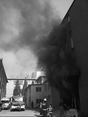现场消防员称,赶到时,浓烟从该楼一层三、四米宽的大门口翻滚而出,整个大厅全是黑烟,能见度很低。几十名师生站在楼门前。