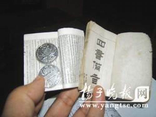 昨天下午,记者来到泰州海陵区陈先生的家,只见他小心翼翼地从裹了好几层的包装中,拿出一只小塑料袋,然后从塑料袋中取出两本袖珍“奇书”。经过测量,其中一本尺寸为4.5厘米×5.5厘米;另一本为5厘米×8.5厘米。两本书的扉页印有“光绪辛卯仲春精校重订”的字样,表明它们已经100多“岁”了。翻开内页,记者看到前者为《五经》中的《礼经》;后者为包括《大学》、《中庸》、《论语》、《孟子》在内的《四书》,其中细如发丝的字迹,让人看得非常吃力,不一会儿记者就觉得眼睛十分难受。陈先生告诉记者,他爱好收藏,尤其喜欢古书,这两本书是他多年前在安徽农村意外“淘”来的,一直当成宝贝珍藏。