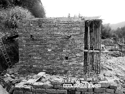 重建第一天,让他最担心的事情就出现了,施工方的做法让廖国军有些瞠目结舌。建筑商竟然没有打任何地基就开始在平地上直接砌墙,“这简直就是猪舍的盖法”。在廖国军的坚持下,施工方才勉强同意在墙体的交界处打上了水泥地基。