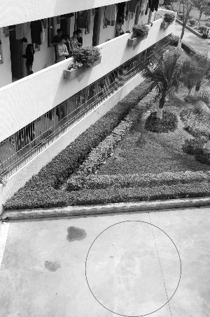 昨日中午12时许,记者赶到事发学校。在事发宿舍楼2号楼南侧围墙位置,仍可看见地面上残留有一大摊血迹。相关部门工作人员正在宿舍楼内进行调查。据该楼一名学生介绍,他们在凌晨6点多听到外面很吵,跑出来一看,才知道是有人跳楼了,随后很快就看到救护车和警车陆续赶到现场,据说跳楼的就是该校学生,已经当场死亡。