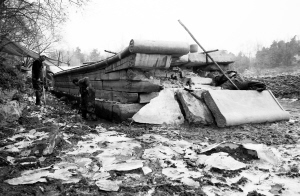此时,石舫周围约两米宽的地方已经被草垛围挡,约60厘米宽的草垛上工人正在检查施工情况,草垛内工人们正在清淤。据现场施工的张师傅介绍,目前已清淤高度约1米。 “我们是大年初三时发现石舫一侧坍塌的,约十天前,我们开始围堵并排水、清淤。”据了解,在盛夏涨水时石舫只有约十厘米露在水面外。“从现在挖的高度来看起码有1.7米左右长期浸泡在水里。”张师傅说,“另外,石头年久失修一定会造成一定松动。”