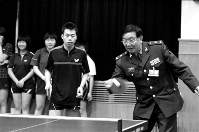 全国政协委员田伏洲对学生们说:“我们国家一直没能获得诺贝尔奖,曾经陈景润很有希望获得,但他英年早逝让我们扼腕,大家一定要养成体育锻炼的好习惯,只有健康的身体才能更好地为国家服务。”了解到乒乓球是北京66中的特色体育运动项目,四位委员还参观了学生们的乒乓球训练场。在学生们的邀请下,年过花甲的两位将军和两位教授也拿起了乒乓球拍,与同学们对垒了一局乒乓球双打。