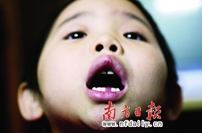 当日傍晚6时许,白英琴将珊珊从幼儿园领回家,“她没有太多话,回到家我做了她喜欢吃的肉,可她怎么也不张口吃饭。”当白英琴让珊珊张口,试图喂她吃饭时,发现珊珊下排门牙不见了(如图,杨曦摄)。