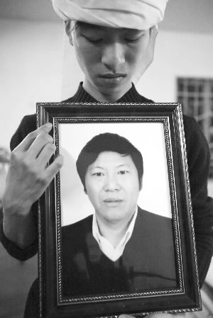 赵老师的灵堂就设在学校教学楼后面的一座平房内,盖着大红棉被的赵老师的遗体静静地躺在那里。灵堂内,不时有师生前来祭拜赵老师。