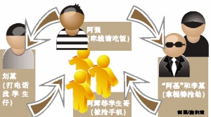 据嫌疑人交代,3月8日,一个花名叫“阿基”的男子找到阿强,让阿强想办法找几个学生出来,伺机抢劫他们的财物。阿强因最近手中缺钱,就一口应承下来,并找到平时在外面玩时认识的19岁的广西人刘某,以请吃饭为名让刘某带些“学生仔”出来。