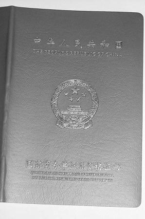 紫红色的封面,中间烫有金色的国徽,上端还印有同样金色的中英文“中华人民共和国”。这是一本国际商务单证员资格证书,内页用中英文字,印刷精美,还盖有发证单位的大红印章。