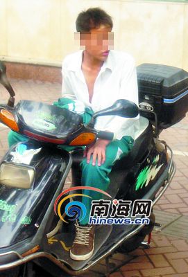 一学生骑着摩托车等同学。南国都市报记者李小岗 摄