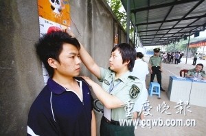 军检为期8天,324医院是我市唯一承担军检工作的医院。董民说,想考军校的学生,均要过“三关”:体格检查、面试和心理测试,3个项目集中在一天测试。来自40个区县的考生将按地区、分8批参加军检。据了解,要求报考军校的考生,标准体重为:(身高-110)公斤,男生超过该标准25%或少于15%,女生超过或少于15%,都不合格;男女生的身高最低要求分别为162cm和160cm;裸眼视力最低标准为4.5。