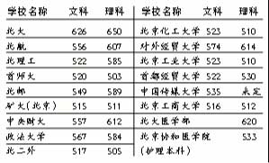 昨天(10日),本市高招一批录取工作正式开始,17所高校分别确定了在京调档线或实际录取线。其中北京大学的文科调档线为626分,超过清华4分;理科调档线650分,比清华低6分。
