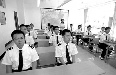 今年7月从高校毕业后,这38个年轻人怀揣制药工程、土木工程、电子信息工程、经济管理等各种专业的学历证书,和航空公司签订合同,成为公司一名员工,目前6个月的专业课程培训属于试用期。每个月他们可以从公司领到两三千元的薪水。不过他们不能随便旷课,因为旷课就等于旷工。