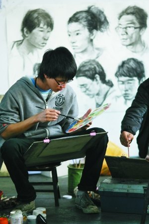 如果不留意窗外的情景,很容易以为这是一所中学在上美术课,不过窗外周围的环境却是一片果园风光。这个被果园包围的培训中心是专门为参加美术高考的考生而设的特殊培训班,行内人士称之为“升大班”或者“画室”。