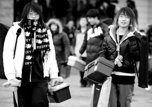 昨天8时,北京城市学院考点前已拥挤着近百名冒着严寒陪考的家长,一些手提画板、颜料盒等绘画用具的考生陆续走进考点。据了解,网上报考美术类专业的考生为7130人。首都师范大学、北京工业大学、北京服装学院、北京城市学院4所高校设有考场。