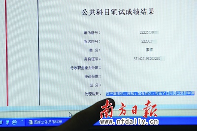 1月9日下午,因人保部网络“塞车”,数次通过上网查“国考”成绩不得的易长安,花了一元钱通过短信查询自己的分数,结果出乎他的意料:行政职业能力测试0分,申论51分,短信说明:“您本次考试有违纪行为”。一夜的忐忑后,1月10日,易长安起早到办公室的电脑查询考试成绩,“公共科目笔试成绩结果” 打开后,易长安傻了眼,行政职业能力分数和申论分数都没有分。成绩结果的尾端附着处理结果:“有严重违纪,违规,如有异议,可在7日内提出复核。”