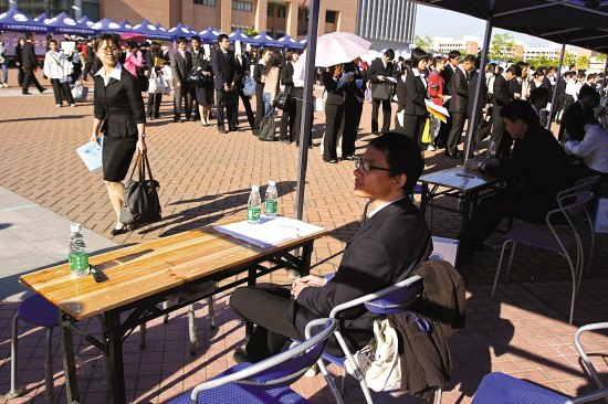 除了专业和学历高要求,多数企业也要求毕业生英语水平在四级以上,很多职业技术学校的专科生只过了二级。记者现场采访发现,有的同学在这个大型招聘会上没推销出一份简历。