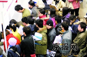 某高校英语系研究生即将毕业的吴婷2月8日刚刚参加完在老国展举行的大型人才招聘会。虽然在抱怨招聘会,但是看到紧接着14至15日同样在老国展有招聘会的消息,吴婷还是强打起精神,握紧拳头:“还是再去碰碰运气吧!”