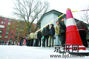 本报讯(记者左颖)今天上午,虽然天空中仍然飘洒着零星的小雪,但位于德胜门西大街甲5号的北京市毕业生就业市场却是一片“火热”景象。