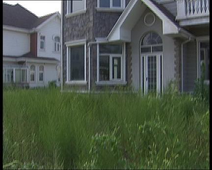 这是一条求购信息,他求购的就是我左手边的这栋别墅,我们从别墅开着的门可以看到,在通往房间的路上已经涨了一些杂草,这里可能有一段时间没有人居住了,再看我右边的这栋别墅,车库门口也已经长满了荒草,而像这种情况在这个别墅区里并不仅这两家。