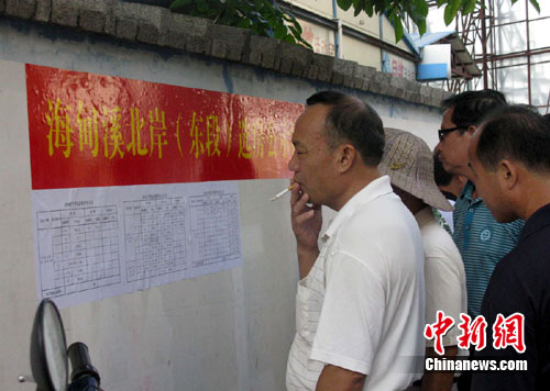 中新网海口9月8日电(朱文)今天上午7点半,原住新安村108号的林仁光一家便早早的来到海口海甸溪北岸拆迁办公室门前。9月8日至29日,海口海甸溪北岸拆迁工程中选择实物补偿的第一期、第二期、间乐新村、市电影公司及第三期、第四期到东段安置的被拆迁人将在此选房,今日上午共有27户拆迁户参与选房。