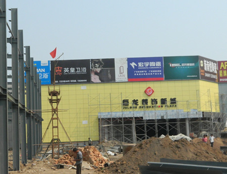 8月27日,记者在施工现场看到,巨龙装饰城大门外悬挂招商条幅的3层小楼已经拆除,但巨龙装饰城主体工程却还在紧张施工中。据施工人员介绍,门前的小楼前几天就拆除了,但巨龙装饰城主体工程施工一直都没停,有时也有领导前来检查,都是看看就走了。