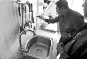 为了验证家里真的带电,崔先生为记者演示了一下。当他用电笔碰到水池的时候,电笔上的灯果然闪了一下,但亮度非常低。