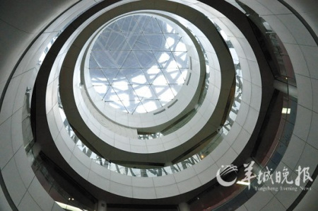 走进宽敞的大厅,天花板上弧形的银白灯管,银白色的墙壁,洁白光滑的地板,让人忍不住联想起太空。
